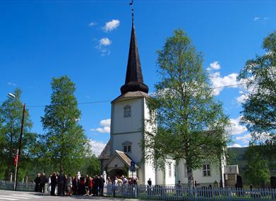 Kirken ligger langs rv.30 i Øvre Rendal.