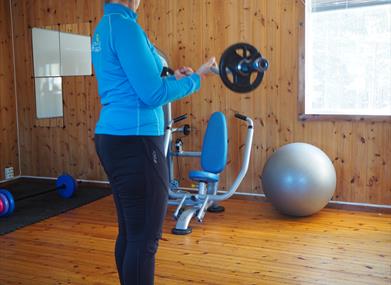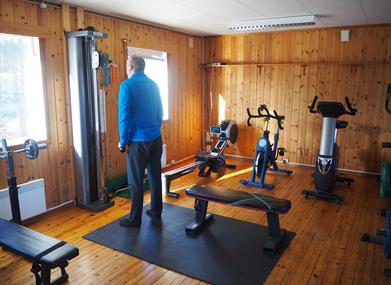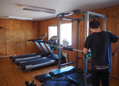 Her finner du et bredt utvalg av ulike type styrkeapparater og vekter, samt kondisjonsapparater av ulike typer.
