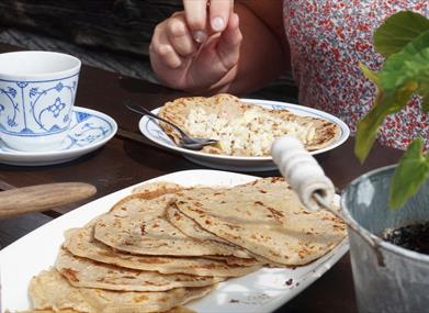 Dere kan bo i enkel hytte på sætervollen og være med på fjøsstellet. De som eier setra har melkekyr og småkalver. Hver morgen følger de kua til beite i skogen.