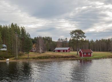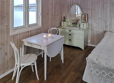 Det er to utleieenhetene på eiendommen. Begge utleieenhetene brukes alene og har godt med uteplass rundt seg. Det inngår ca. 15o meter strand og en bekk på eiendommen, som totalt er på over 20 mål som kan benyttes av gjester. Bad/wc for de 2 enhetene ligger ca. 80/100 meter unna i Ildhuset og har egen inngang utenfra. Vannkran ved siden av denne døren.